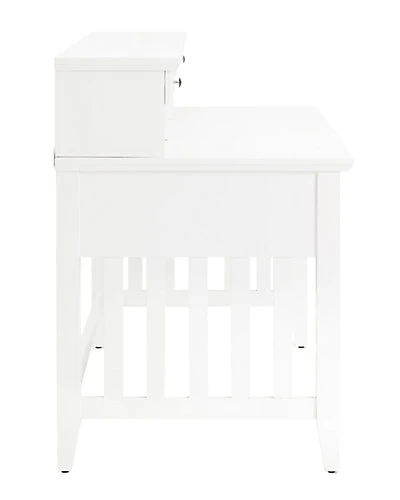 - Settle in to the Alder Computer Hutch by Crosley. Inspired by the historic mission design of the west, this hutch’s clean lines and smooth surfaces provide a great desktop and great storage in one piece. The hutch’s handy upper drawers are perfect for stationery and writing tools, and the cubbies are great for mail and books. Slide out the keyboard drawer for tidy typing, and use the lower gliding drawers to keep clutter at bay. There’s even a small hole in the back of the hutch to hide your computer cords, so nothing will spoil your style.