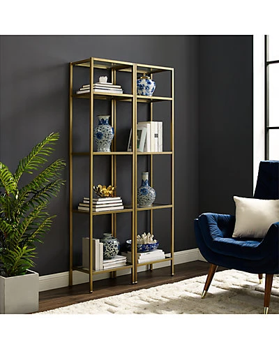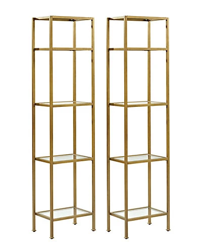 - Stylish and modern, the Aimee 2 Piece Etagere Set is an eye-catching addition to any home. With a sturdy yet sleek steel frame, the Aimee Etagere Set can be paired with a variety of decor. The open, tempered glass shelves of the etageres are perfect for display and organization without overwhelming the room.
