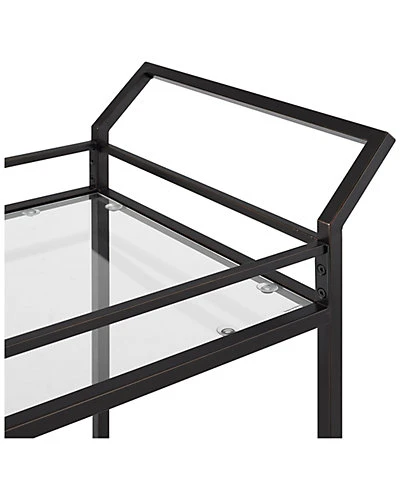 - Design details: Stylish and modern, the Aimee bar cart is an eye-catching addition to any home. The sturdy steel frame and tempered glass shelves create a simple silhouette that works with a variety of decor aesthetics. Fitted with four castors, the Aimee bar cart is a flexible piece that brings spirit to any room in your home. ; Art Deco inspired design; Oil-rubbed bronze finish; Frame is constructed of sturdy steel; Two tempered glass shelves; Includes a total of four caster wheels with two that lock; Pairs with industrial, rustic, traditional and modern farmhouse decor