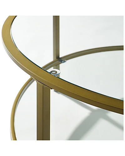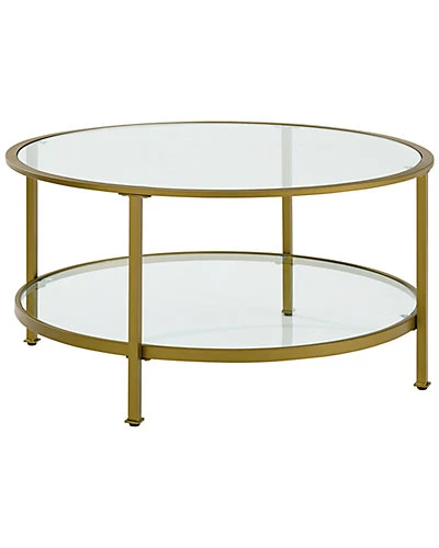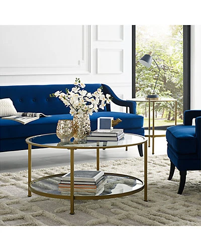 - Design details: Stylish and modern, the Aimee Coffee Table is an eye-catching addition to any home. With a sturdy yet sleek steel frame, this coffee table can be paired with a variety of decor. The Aimee Coffee Tables tempered glass top and shelf create an inviting surface for entertaining and display. ; Art Deco inspired design; Soft gold finish; Frame is constructed of sturdy steel; Tempered glass tabletop; Tempered glass shelf; Upscale display and storage for any room; Pairs well with glam, modern farmhouse and traditional decor