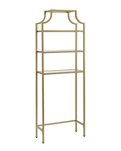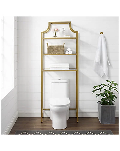 - Design details: Stylish and modern, the Aimee Space Saver is an eye-catching and practical storage solution. Designed to fit over most standard toilets, this space saver features three tempered glass shelves perfect for storing all your bathroom essentials without overwhelming the space. The pagoda-styling and sleek steel frame add visual interest making this a great addition to any bathroom; Art Deco inspired design; Soft gold finish; Frame is constructed of sturdy steel; Three tempered glass shelves; Decorative pagoda-styled frame; Pairs well with glam, traditional and modern farmhouse decor