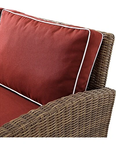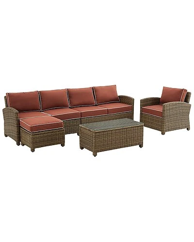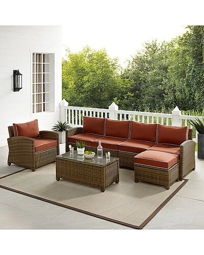 - Lounge in comfort and style with the Bradenton 5pc Sectional Set. The sturdy steel frames of each piece are wrapped in beautiful all-weather wicker, while moisture-resistant cushions top the seating and ottoman. Modular in design, the loveseats can be pushed together to create a four-seat sofa or be arranged separately. The ottoman can easily be moved for a place to prop up your feet, while the traditional armchair offers extra seating. Add in the included glass top coffee table, and the Bradenton 5pc Sectional Set makes relaxing alfresco a breeze.