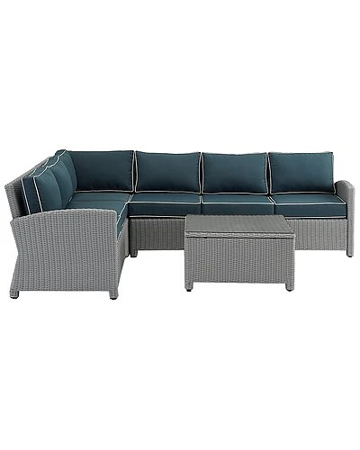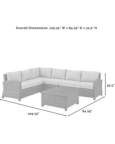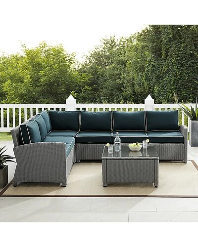 - Whether you are lounging solo or entertaining a group, the Bradenton 5pc Sectional Set fits the bill. The sturdy steel frame is wrapped in beautiful all-weather wicker and topped with moisture-resistant cushions, making this sectional set both durable and stylish. The Bradenton sectional provides the utmost in flexibility and comfort with its modular design, gently arched arms, and deep seating. Add in the included glass top coffee table and the Bradenton 5pc Sectional set will make outdoor entertaining a breeze.