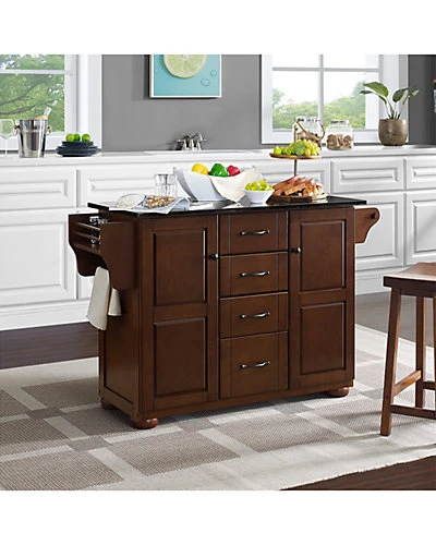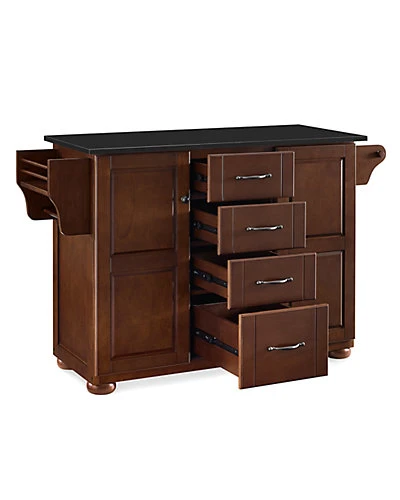 - Design details: Prepare all your meals with ease using our Eleanor Kitchen Island. This cart features numerous storage options to stow away all your prepping utensils. There are four spacious drawers and two cabinets along with a spice rack and towel rack on the ends. Constructed of solid hardwood and veneers sturdy island will complement your kitchen decor while also providing much-needed functionality.