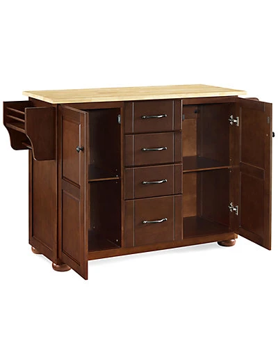 • Design details: Prepare all your meals with ease using our Eleanor Kitchen Island. This cart features numerous storage options to stow away all your prepping utensils. There are four spacious drawers and two cabinets along with a spice rack and towel rack on the ends. Constructed of solid hardwood and veneers sturdy island will complement your kitchen decor while also providing much-needed functionality.