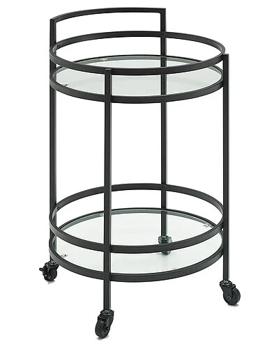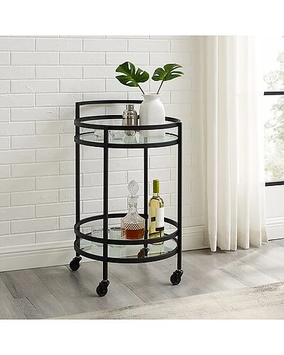 - Featuring a modern silhouette and finish, the Bailey Round Bar Cart is ready to party in style. With a small footprint and caster wheels, this cart creates a mobile beverage station, plant stand, or end table. The two tempered glass shelves can support wine and liquor bottles, as well as glassware and decor. The Bailey Bar Cart is a lovely addition to any room in your home. Art Deco inspired design.Frame is constructed of sturdy steel.Matte black finish.Two tempered glass shelves each with a 20lb weight limit.Includes a total of four caster wheels with two that lock.Pairs well with modern, mid-century, modern farmhouse, and traditional decor…………..
