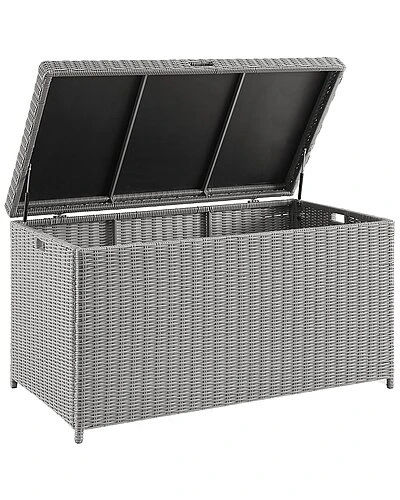 - Stay organized and clutter-free with the Bradenton Storage Bin. Featuring a durable powder-coated steel frame covered in all-weather resin wicker, this upscale deck box protects your outdoor necessities in style. Deep enough to store outdoor cushions or pool toys, the Bradenton Storage Bin is a welcome addition to any patio or deck.