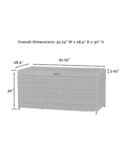 - Traditional design.UV resistant all-weather resin wicker.Weather-resistant powder-coated steel frame.Handwoven gray resin wicker.Oversize interior compartment fits Bradenton cushions.Pneumatic hinge for smooth, anti-slam closing.Adjustable levelers on feet………….
