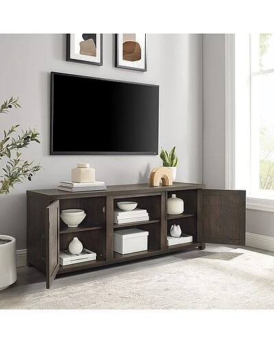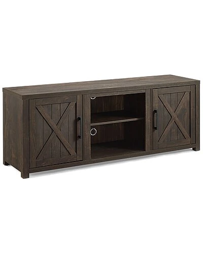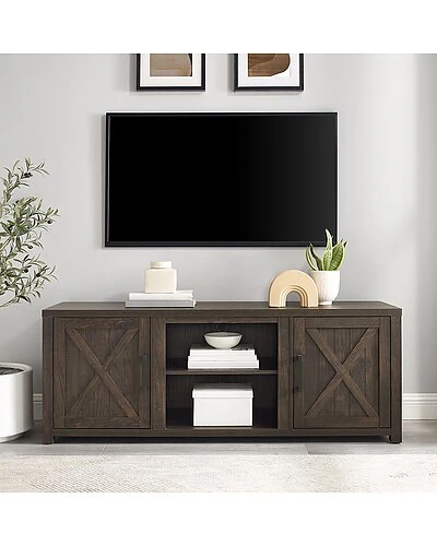 - Ever-trending modern farmhouse design meets functional home entertainment with the Gordon 58 Low-Profile TV Stand. Echoing the rustic charm of a classic barn door, the cabinet doors feature a slatted look with an x-motif. Adjustable shelving in the cabinets and center compartment offers flexible space for media components. Ideal for TVs up to 65, the Gordon TV Stand will make a beautiful focal point in any room.