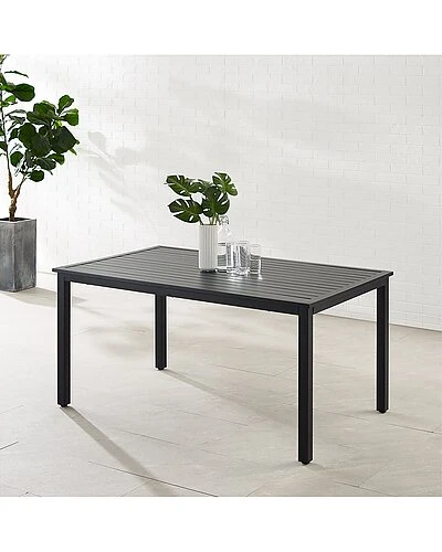 - Simple and versatile, the Hansen Outdoor Dining Table can be paired with a variety of seating options. Constructed of sturdy powder-coated steel, this dining table is fade and water-resistant. With a standard umbrella hole at the center, the Hansen Outdoor Dining Table will have you enjoying your next alfresco meal in shaded comfort. Modern design .Constructed of sturdy weather-resistant steel.Matte black powder-coated finish.UV and rust resistant.Classic slatted tabletop.Standard umbrella hole in table measures 1.97″ in diameter.Umbrella hole cover sits flush with the tabletop.Table weight limit is 100lbs…………