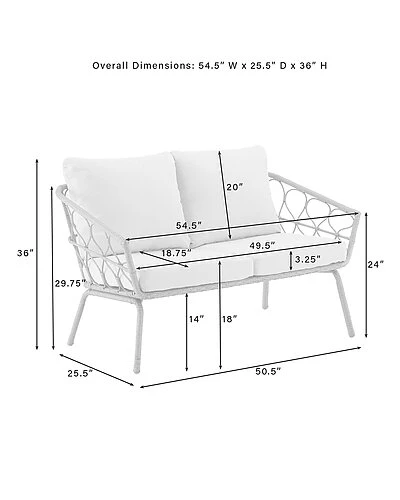 - Turn your patio into a breezy bohemian retreat with the Juniper 2pc Conversation Set. Crafted from rattan-style resin wicker, this set showcases delicate woven loops over steel frames. With lush, moisture-resistant cushions on the loveseat and a chic round coffee table, the Juniper conversation set will be a hit at your next outdoor soiree. Bohemian design.Weather-resistant powder-coated steel frame.Handwoven rattan-style resin wicker in a natural finish.Creme cushion covers.High-performance solution-dyed polyester cushion covers resist mildew, sun fade, and abrasion.Moisture-resistant high grade cushion cores.Delicate loop design.Loveseat has a classic barrel silhouette.Round drum-shaped coffee table.Seating for up to two.Table weight limit is 100lbs.Loveseat Dimensions: 54.5″W x 25.5″D x 36″H / 27.99lbs.Coffee Table Dimensions: 22.75″W x 22.75″D x 18″H / 15.65lbs…….