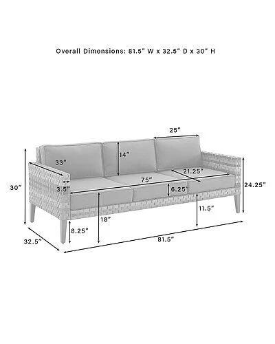 - Measures 30in high x 81.5in wide x 32.5in deepin