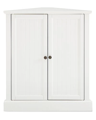 - The Shoreline Stackable Corner Pantry provides space-saving organization with a dash of coastal flair. Featuring an adjustable shelf and charming beadboard details on the doors, this accent cabinet is designed to tuck neatly into any corner. Ideal for smaller rooms, the Shoreline Stackable Pantry is great on its own or can be stacked with a second one, doubling your storage without eating up valuable floor space. Coastal design.White finish.Genuine metal hardware with a bronze finish.Beadboard paneling on doors.Cabinet doors have magnetic closures.One adjustable and removable shelf with a 15lb weight limit.Includes metal plate for stacking two units together.Second unit for stacking is sold separately.Can be used in a bathroom, home office, or kitchen.Pairs well with traditional and farmhouse decor……….