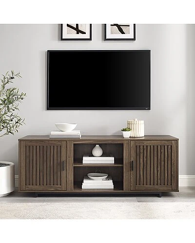 - No need to sacrifice style for storage with the Silas 58 Low-Profile TV Stand. Featuring modern elements like faux vertical slats and an all-metal frame base, this entertainment center brings mid-century vibes wherever it goes. With adjustable shelving in the cabinets and center compartment, this TV stand offers flexible space for media components. Ideal for TVs up to 65, the Silas TV Stand is ready to class up any room.