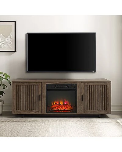 - No need to sacrifice style for storage with the Silas 58 Low-Profile TV Stand with Fireplace. Featuring modern elements like faux vertical slats and an all-metal frame base, this entertainment center brings mid-century vibes wherever it goes. The cabinets offer adjustable shelving for flexibility, while the center section showcases an electric fireplace for keeping cozy. Ideal for TVs up to 65, the Silas TV Stand is ready to class up any room.