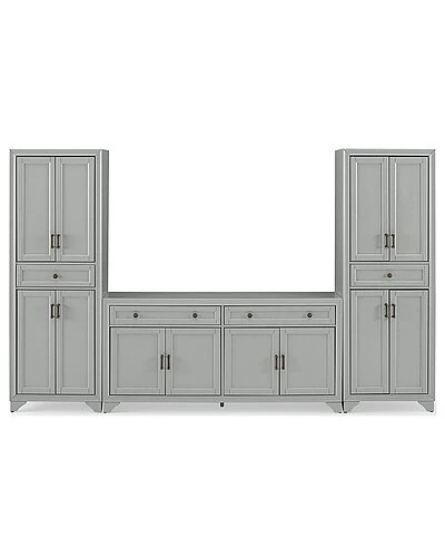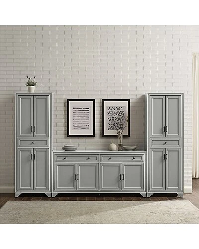 - Whether you love a traditional look or a modern farmhouse vibe, the Tara 3pc Sideboard and Pantry Set brings stylish organization to your dining room. The sideboard features two wide full-extension drawers and two large cabinets with adjustable shelves, perfect for storing dishes and flatware. Each pantry has a full-extension drawer, plus two large cabinets with adjustable shelving, making the Tara 3pc Sideboard and Pantry Set a great option for home storage. Modern farmhouse design.Distressed gray finish.Genuine metal hardware in a distressed brass finish.Both the sideboard and pantries have two large cabinets with double doors and magnetic closures.Each pantry has a full-extension storage drawer on ball-bearing glides with a 15lb weight limit.One adjustable shelf inside each cabinet with a 15lb weight limit per shelf.The sideboard has two full-extension drawers on ball-bearing glides, each with a 15lb weight limit.All pieces are modular to maximize space and flexibility.Pairs well with traditional decor.Sideboard top weight limit is 100lbs.Pantry Dimensions: 23.75″W x 15″D x 67.75″H / 83.6lbs.Sideboard Dimensions: 61″W x 15″D x 29.63″H / 97.9lbs……..