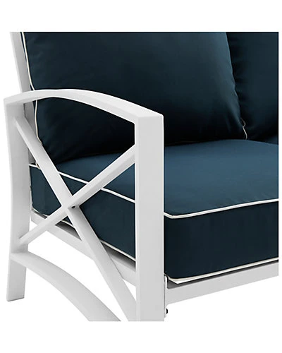 - Lounge in classic style with the Kaplan Outdoor Sofa. Made from sturdy steel, this sofa offers comfortable cushioned seats covered with solution-dyed polyester in a variety of colors. Sit down for a conversation with friends and enjoy the timeless beauty of the Kaplan Outdoor Sofa.