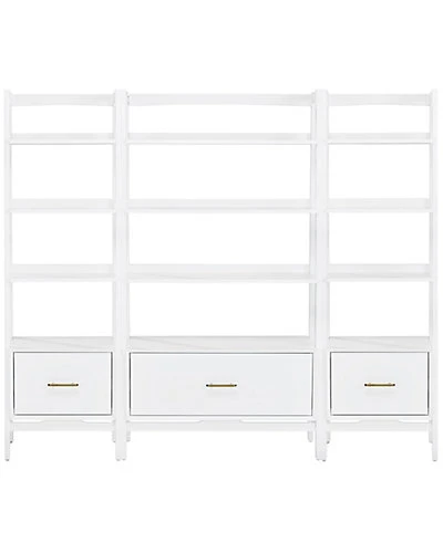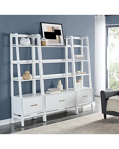 - Taking cues from mid-century modern design, the Landon 3pc Etagere Set features a sturdy wood frame and a total of nine open shelves. Three spacious office style drawers are seated on full extension glides giving access to every corner and making office organization a breeze. Ideal for books and other decor, the Landon 3 Piece Etagere Set delivers a classic storage solution with modern flair.