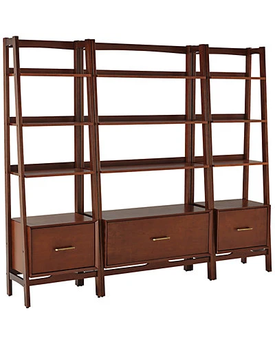 - Design details: Taking cues from mid-century modern design, the Landon 3pc Etagere Set features a sturdy wood frame and a total of nine open shelves. Three spacious office style drawers are seated on full extension glides giving access to every corner and making office organization a breeze. Ideal for books and other decor, the Landon 3 Piece Etagere Set delivers a classic storage solution with modern flair.