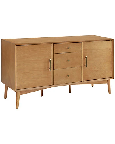 - Design details: Mid-Century Modern style returns with Crosley’s Landon collection. The versatile Landon Buffet can serve as an innovative media cabinet or as a sleek side buffet. Along with the two spacious cabinets, the three center drawers roll out on full extension glides, giving easy access to every corner. The slender, round tapered legs and modern lines are echoed in the genuine metal drawer pulls and cabinet handles. With a beautiful smooth finish, the Landon collection is perfect for bringing elegant simplicity into any home; Mid Century Modern Design; Constructed of Solid Poplar and Manufactured Wood; Tapered Legs; Ideal for Use as a Buffet or Media Cabinet; Two Large Cabinets with Adjustable Shelves; Three Large Drawers; Full Extension Glides; Genuine Metal Hardware; Light Assembly Required