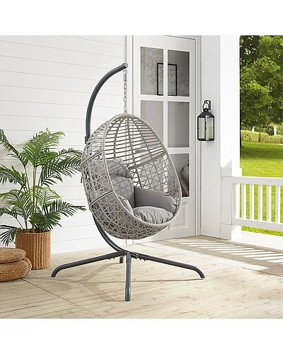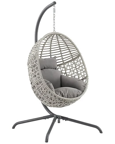 - Relax in the gentle sway of the Lorelei Hanging Egg Chair. With all-weather rattan wicker over a steel frame, this chairs boho vibe is perfect indoors or outside. The tufted cushion of the chair and durable steel stand make the Lorelei Hanging Egg Chair an ideal spot to cozy up with a cup of tea.