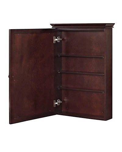 - Design details: Clean lines and lots of mirror space improve any decor, which is why the Lydia Mirrored Wall cabinet is a bathroom essential. The large glass mirror is complemented by a border of genuine wood, capped by beautiful flared molding. Inside you will find three adjustable shelves and plenty of storage space for toiletries. The Lydia Mirrored Wall Cabinet mounts flush against the wall, maximizing space without sacrificing storage.