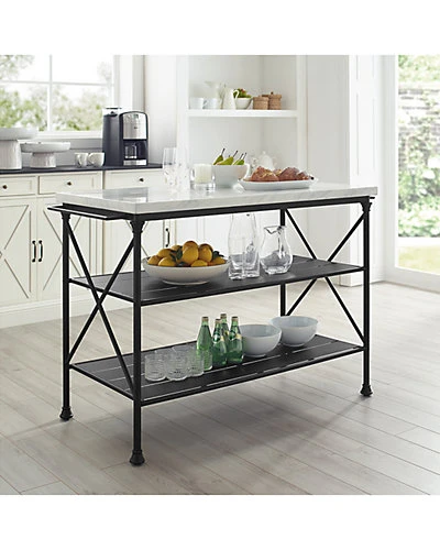 - Design details: Inspired by the French industrial revival, the Madeleine Kitchen Island brings a stylish aesthetic to the kitchen with its faux marble top and steel base. Two large open shelves provide ample storage while two towel bars add convenience to your kitchen prep. Used as a standalone kitchen island or paired with counter height bar stools for added dining space, the Madeleine Kitchen Island is a fashionable and functional addition to any home.