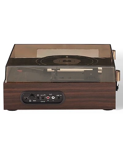 - Design details: compact in Design details: but definitely not in sound, the scout turntable delivers all the features of a full-sized stereo system in a sleek minimalist package. the belt-driven unit boasts three speeds and a built-in receiver for all your vinyl-listening needs, plus a bluetooth-in option for streaming your favorite digital playlists. weve also added a headphone jack for those times when your roommate is studying or when you just want to drown out the rest of the world. available in a walnut or natural finish, its the perfect addition to any thoughtfully curated space. from a tiny dorm room to an expansive home, the little scout takes up big sonic space.