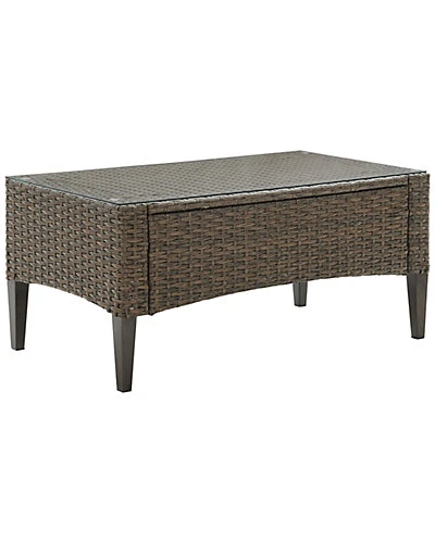- Simple and stylish, the Rockport Coffee Table adds just the right amount of table space for resting a cool drink on a hot day. The all-weather resin wicker is beautifully woven over powder-coated steel and perched atop steel tapered legs painted to look like real wood. Topped with tempered glass the Rockport Coffee Table is the perfect complement to your outdoor space.