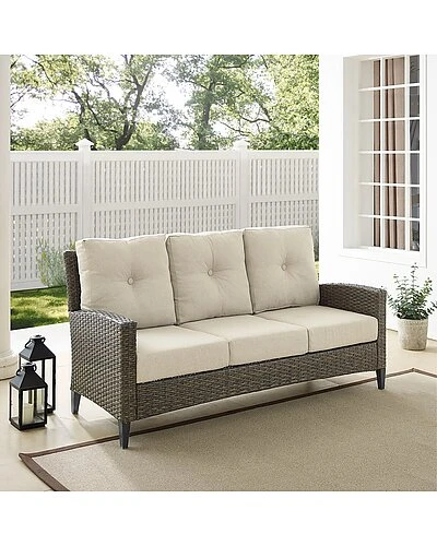 - Bring classic style to your outdoor oasis with the Rockport Sofa. With a high back and gently arched arms, this sofa is built from all-weather resin wicker handwoven over a powder-coated steel frame. Plush seat and back cushions covered in olefin fabric offer durable comfort, while the unique tapered legs are made of sturdy steel that is hand-painted to look like real wood. The Rockport Sofa will be your go-to for outdoor lounging.