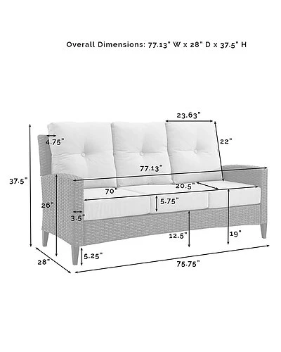 - Measures 37.5in h x 77.13in w x 28in d
