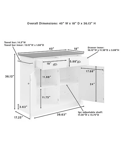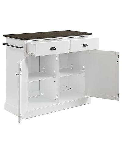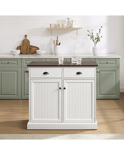 - Incorporate a dash of coastal flair with the Shoreline Kitchen Island. Featuring two large cabinets with adjustable shelving and two large storage drawers, this kitchen island can organize cookware, utensils, and even small appliances. The large countertop and towel bars create a convenient workspace ideal for dishing out your favorite meals. Bring home the Shoreline Kitchen Island and get an instant style upgrade.