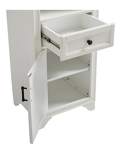 - Design details: The Tara linen cabinet offers much-needed organization to narrow bathrooms, hallways, kitchens, and beyond. This linen cabinet is modeled in a cottage style with its vintage detailing, distressed gray finish and antique bronze hardware. With its tall silhouette and spacious shelf space, this valet offers abundant storage while taking up minimal floor space. Store, or display. The choice is yours and the possibilities are endless; Classic design complements a number of styles- Farmhouse, Cottage, Traditional, or Modern; Constructed of Pine With Birch Veneers; Antique bronze hardware; Full extension drawer; Spacious shelves and cabinet; Light Assembly Required
