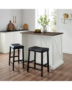 Crosley Furniture Clifton Kitchen Island W/Uph Saddle Stools- Kitchen Island & 2 Stools Home